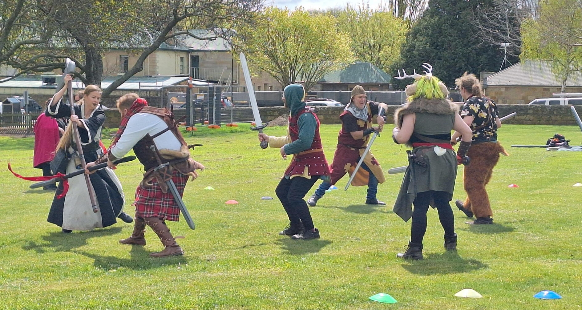 Please check the Timetable page to see when Demonstrations are scheduledAll throughout the day we have demonstrations from some of Tasmania's sword fighting and medieval reenactment societies and clubs.For those who would like to participate in Southern Isle's LARP's special Quest Event at 1:30pm, please be sure to show up at their marquee at least 15 minutes early.Cheer for your favourite fighters then come and say hi to the Demonstrators set up around the Arena in the Demonstration Area, and find out what it takes to be a part of one of the many sword fighting and historical reenactment groups in Tasmania!