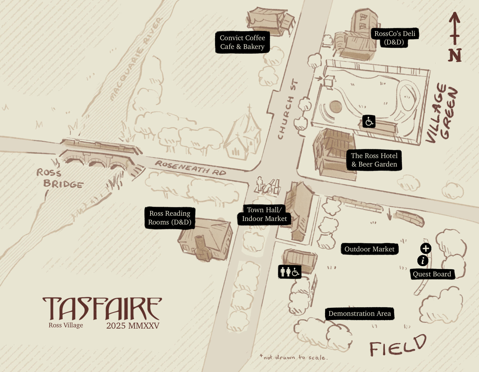 You can access the Map here as well as you make your way around TasFaire, so that you don't get lost on the day!Please be sure to take care when crossing the road, and remember that those who are under 16 are to be accompanied by an adult at all times.Please also take note of the location of the information desk and first aid, which are in the same place on the east side of the Field next to the Quest Board.